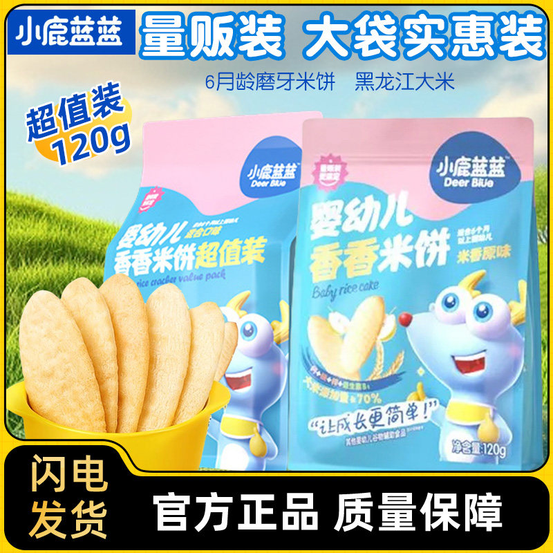 小鹿蓝蓝婴幼儿香香米饼量贩装6个月以上宝宝零食原味饼干婴标120