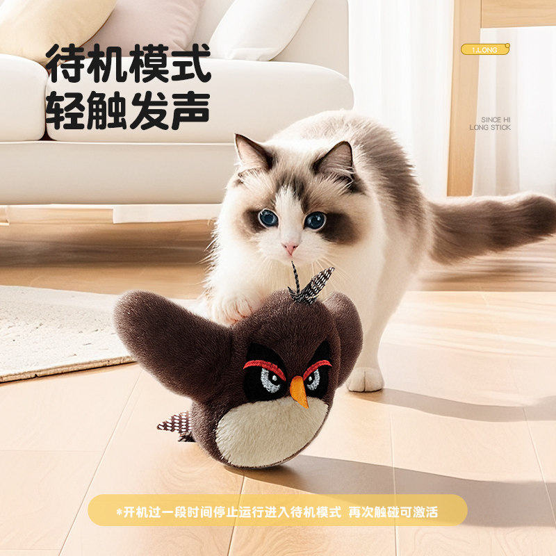 猫玩具愤怒小鸟猫咪自嗨解闷玩具小猫消耗体力宠物电动仿真小鸟