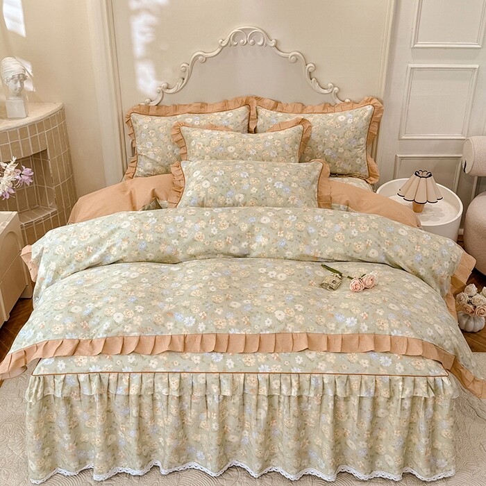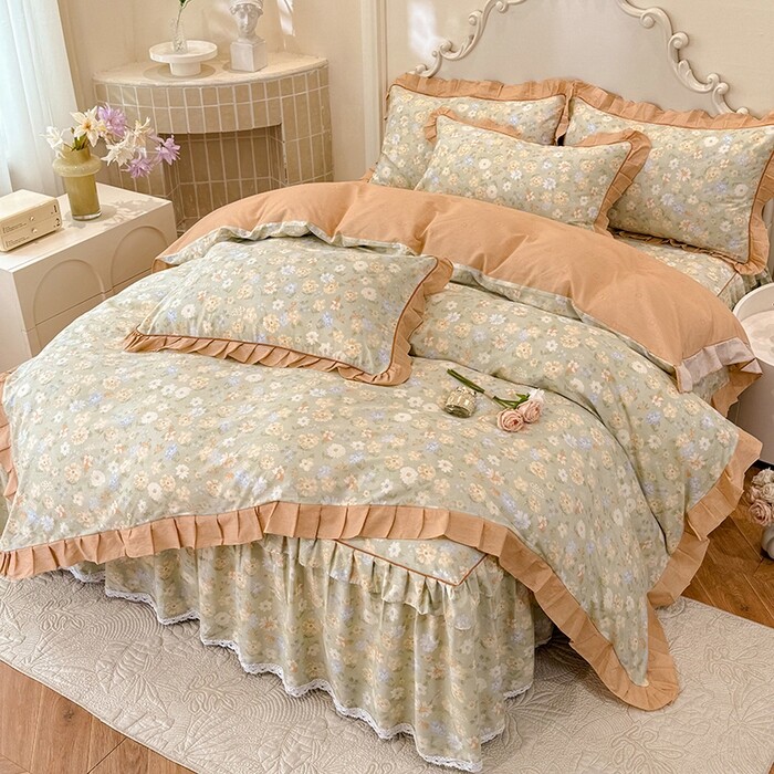 A类双层纱床上四件套纯棉全棉新款田园床单件被套被罩宿舍三件套4