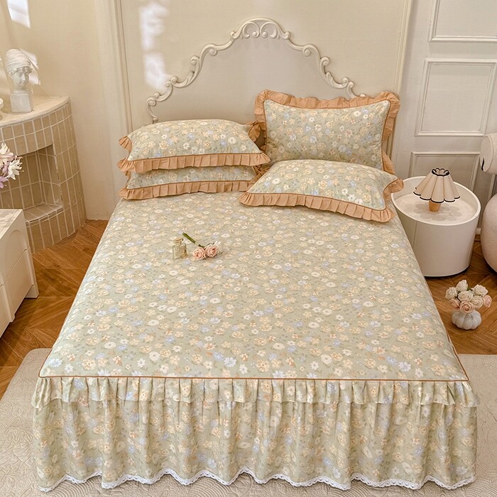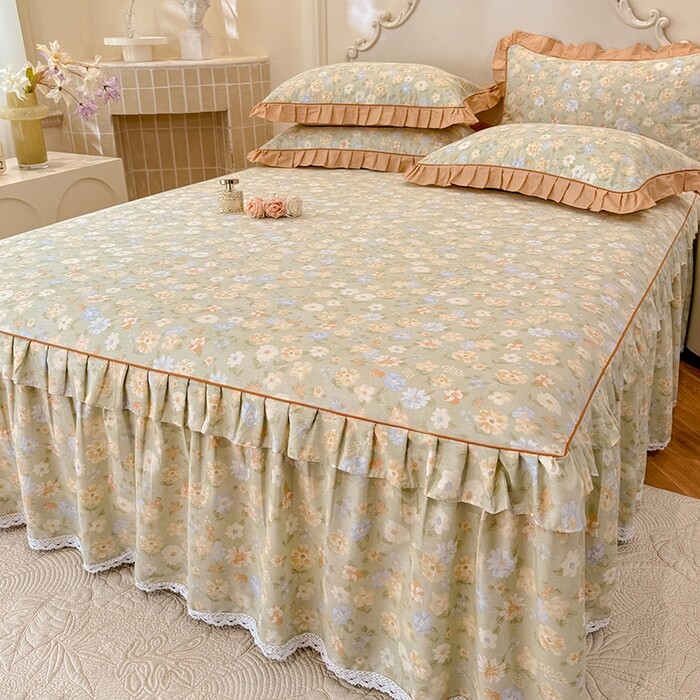 韩版全棉床裙款床单款四件套纯棉蕾丝花边夹棉加厚床品四季款小碎