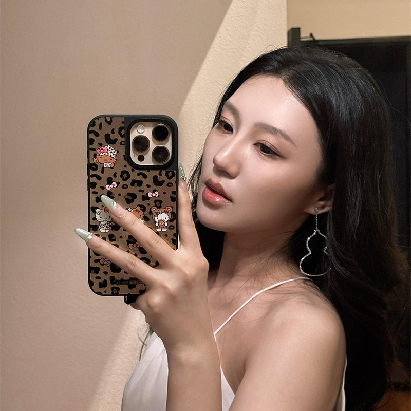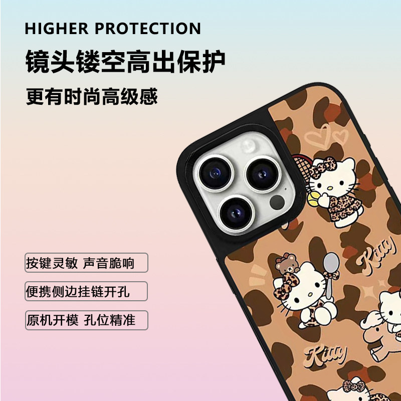 个性粉色豹纹KT凯蒂猫镜面磁吸适用于苹果手机壳明星同款iPhone17Air卡通16Promax防摔15/14/13/12系列保护套