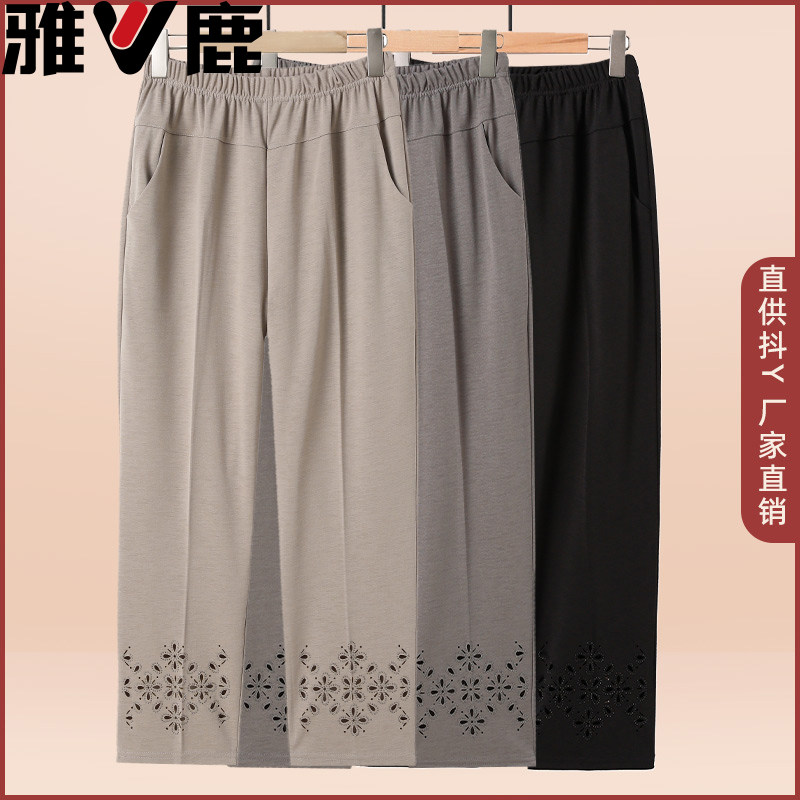 雅鹿中老年人夏装老年女裤妈妈裤子春装奶奶高腰休闲裤老人松紧裤