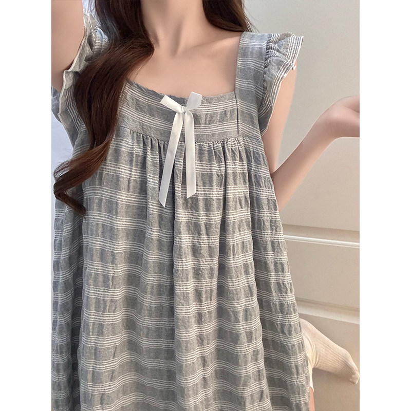 小飞袖睡裙女夏季2026新款棉绸背心睡衣带胸垫一体女士大码家居服