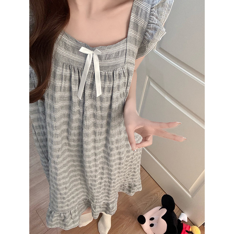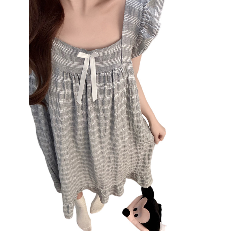 睡裙女宽松夏季薄款条纹睡衣大码200斤短袖孕妇胖mm连衣裙家居服