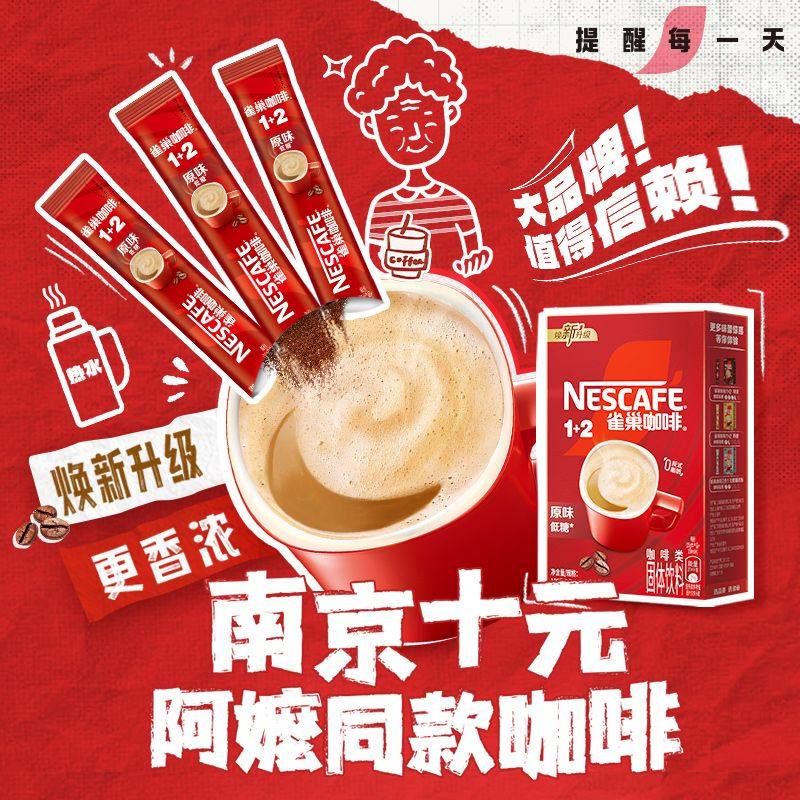雀巢咖啡1+2醇香原味意式散装正品三合一低糖速溶咖啡粉熬夜提神