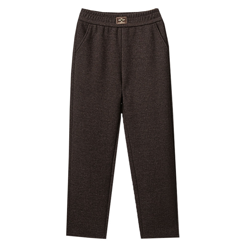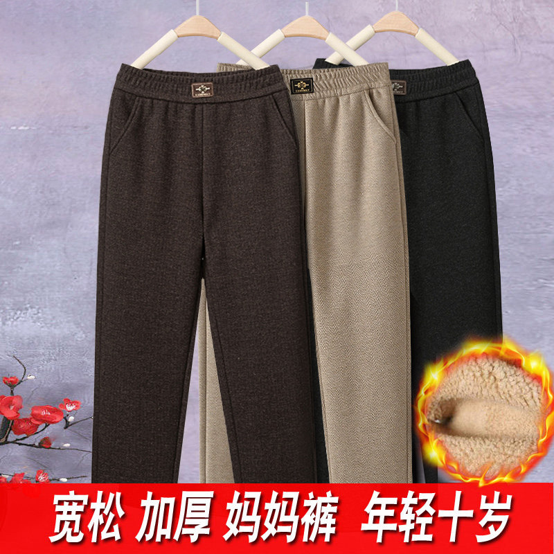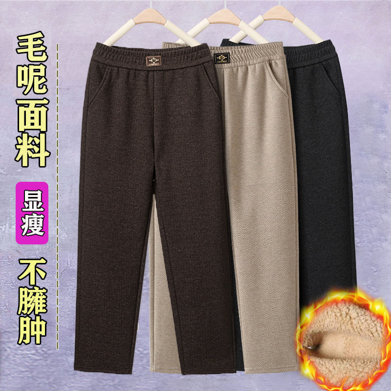 妈妈高档中年羊毛女裤子加绒裤弹力松紧腰妈妈裤高腰直筒休闲裤女