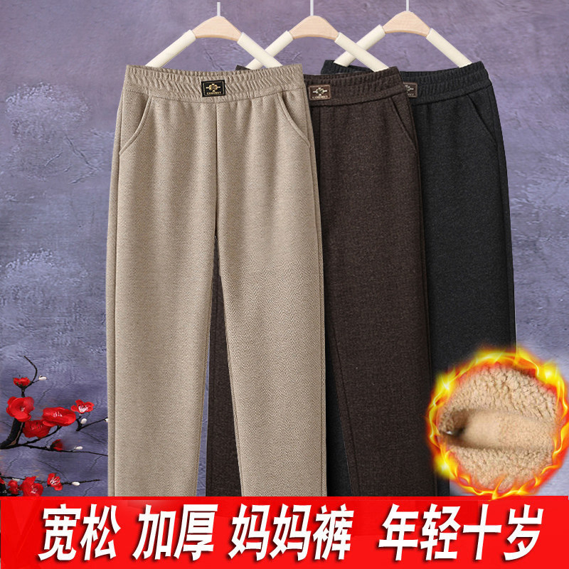 妈妈裤子春秋款松紧高腰弹力中老年女裤宽松大码直筒奶奶加绒长裤