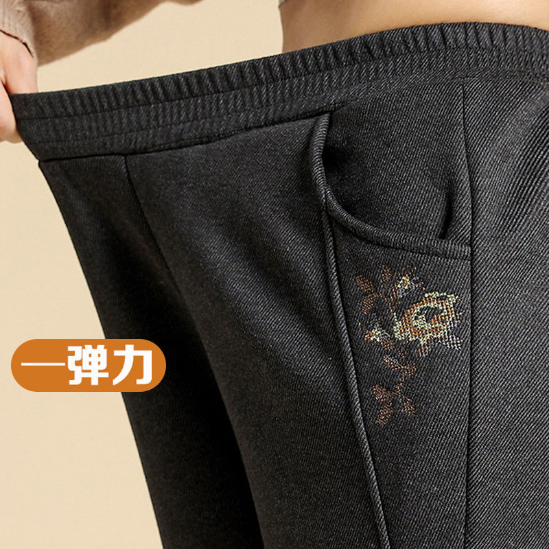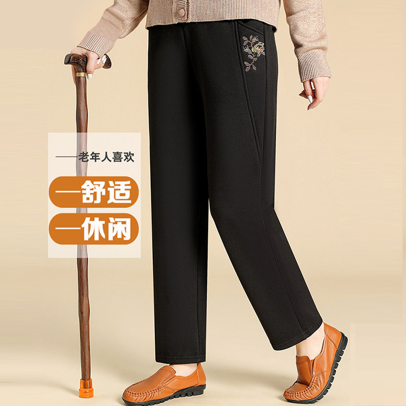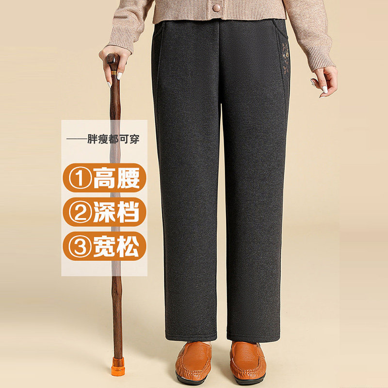 妈妈裤子春秋款松紧高腰弹力中老年女裤宽松大码直筒奶奶加绒长裤