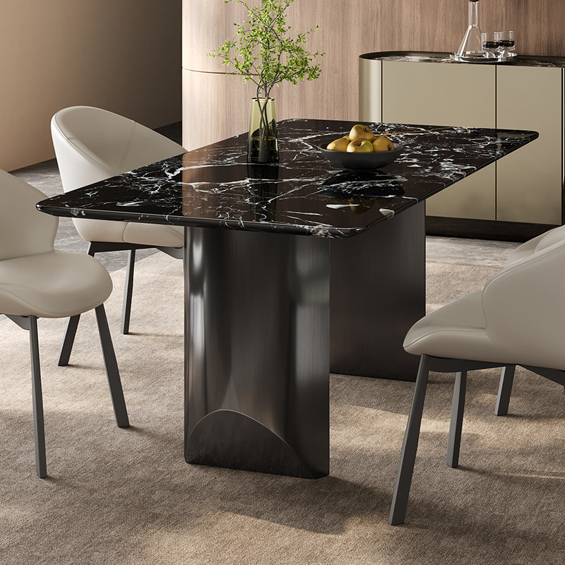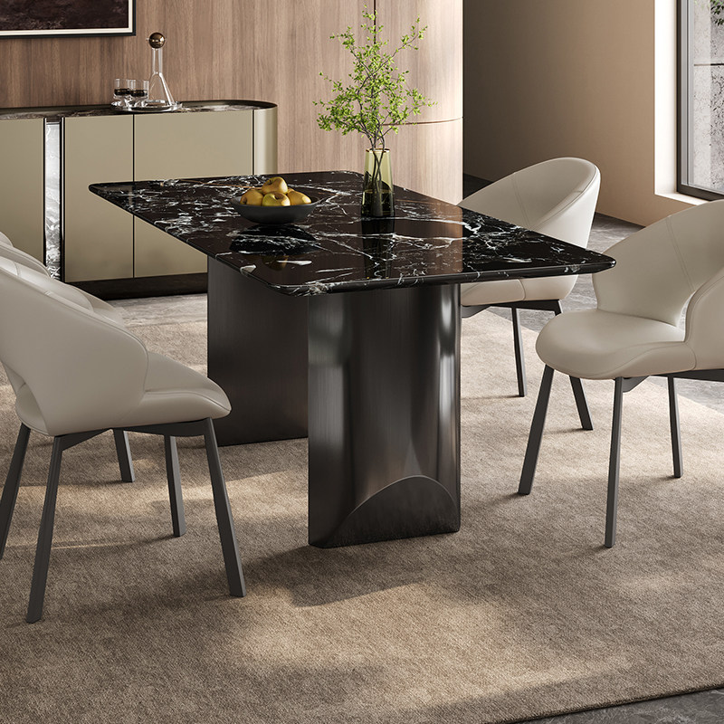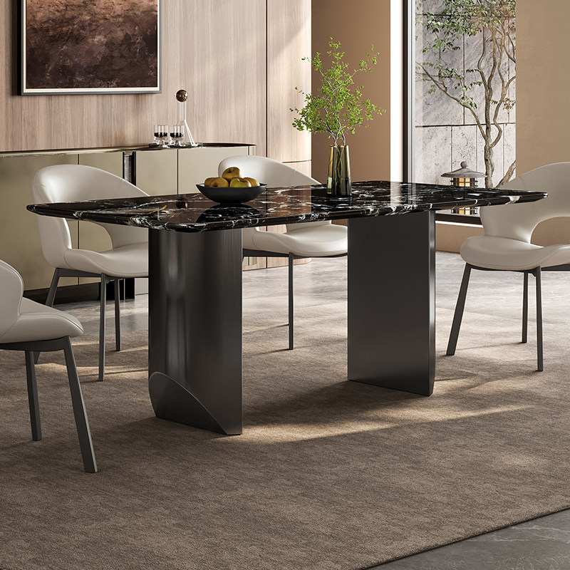 奢石餐桌意式轻奢长方形广东佛山高端宝格丽黑玫瑰天然大理石餐桌