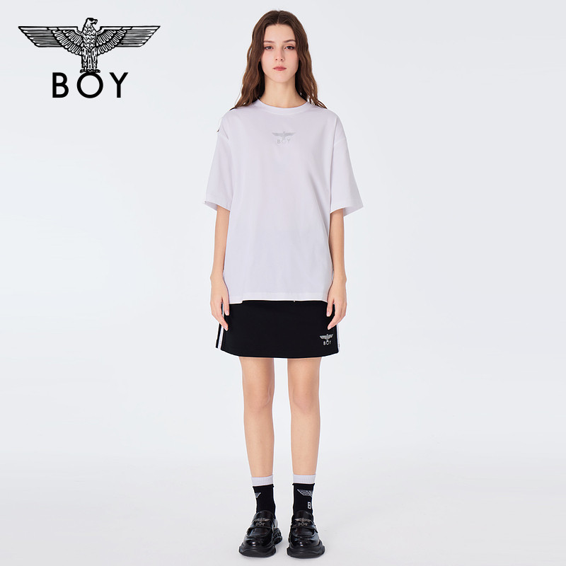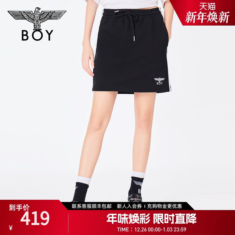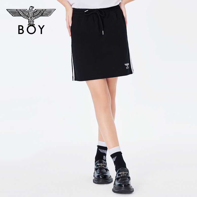 BOYLONDON春夏半身裙运动风侧织带百搭休闲鹰标短裙W18800
