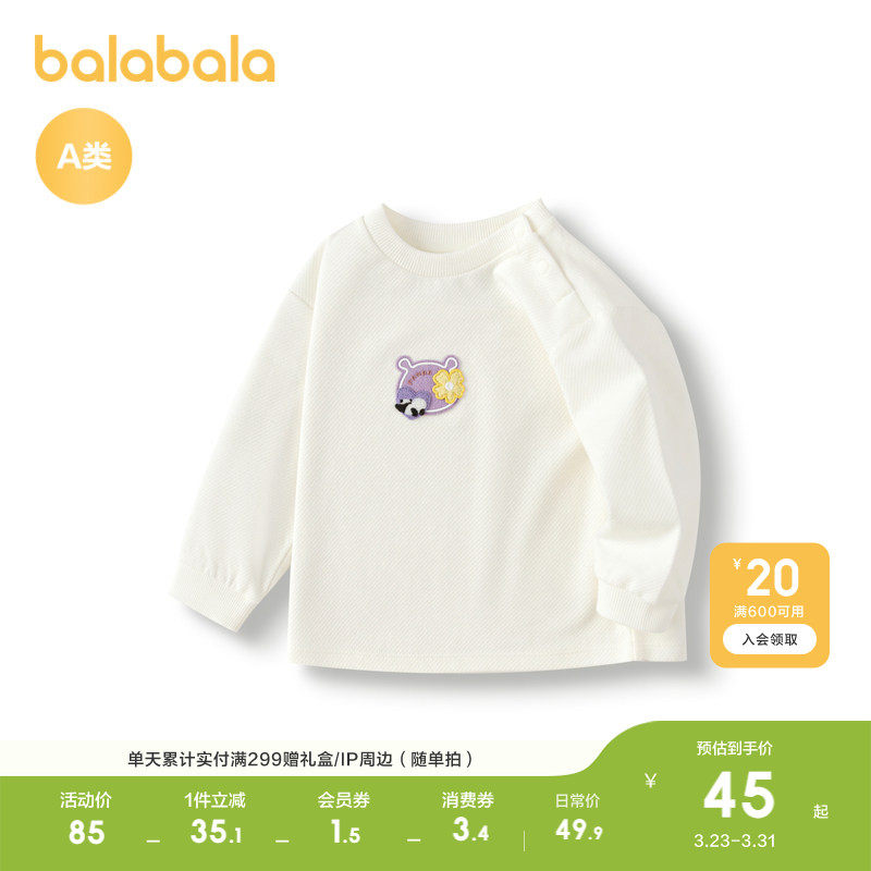 巴拉巴拉童装儿童t恤女宝宝长袖上衣打底衫春装简约清新可爱甜美