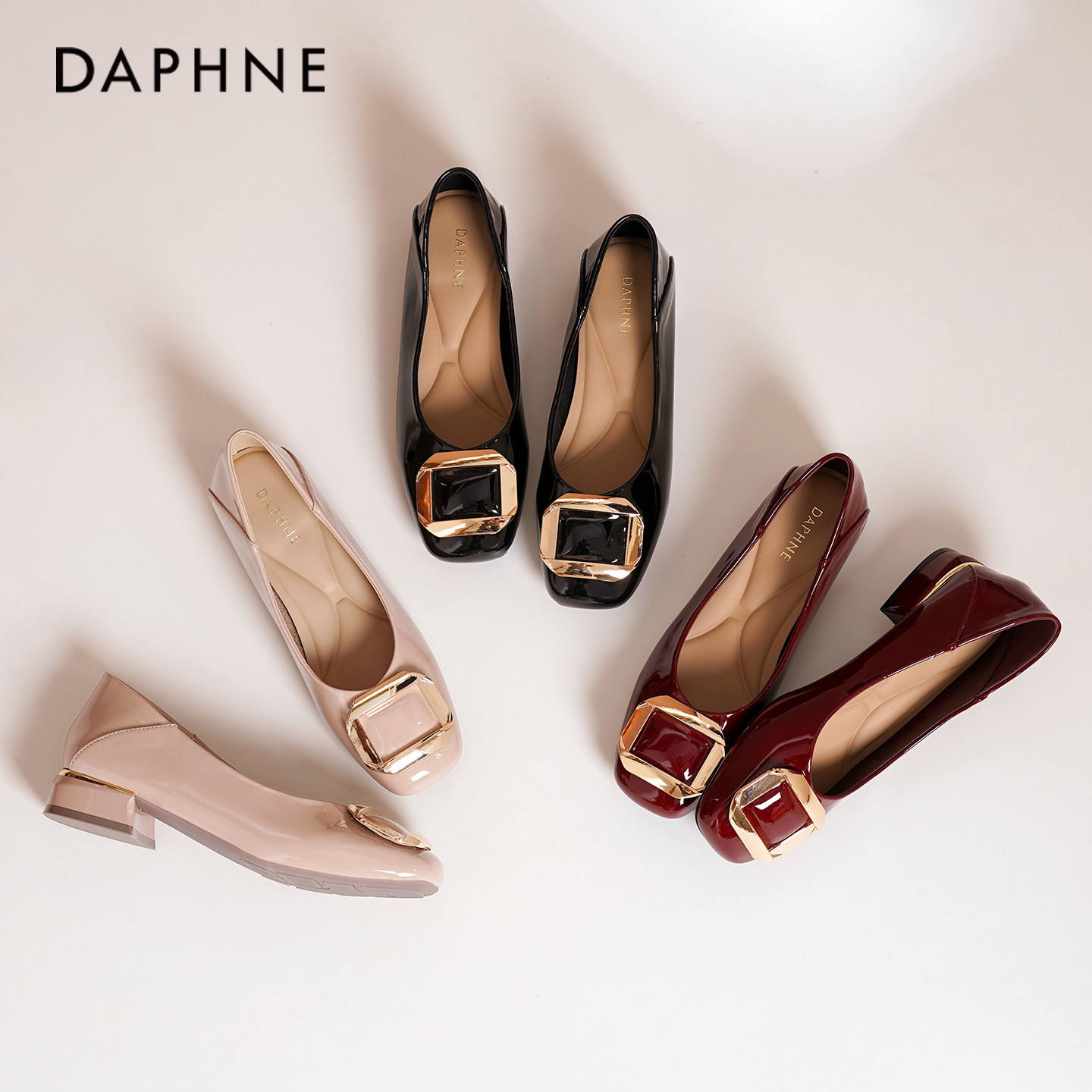 达芙妮裸色单鞋女2026新款粗跟方扣漆皮气质高跟鞋百搭通勤职场鞋