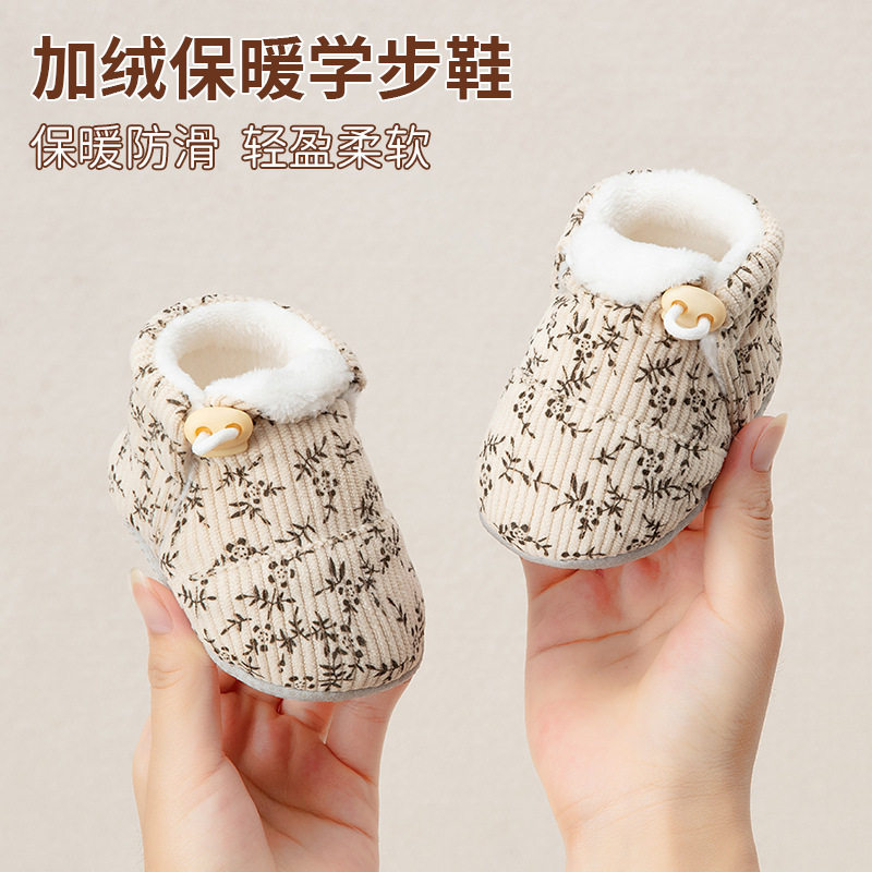 初生婴儿步前鞋子秋冬0到6个月12宝宝加厚幼儿小月龄外出软底鞋袜