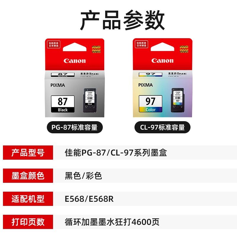 原装佳能PG-87升级可加墨墨盒E568 E568R打印机改装可加墨墨盒CL-97彩色墨盒佳能87黑色墨水一体机墨盒Canon