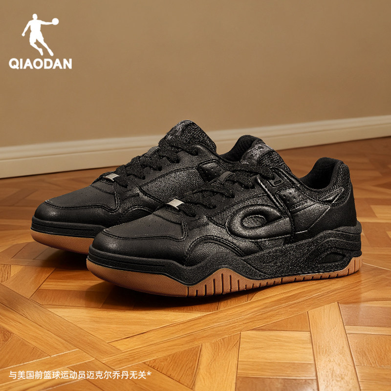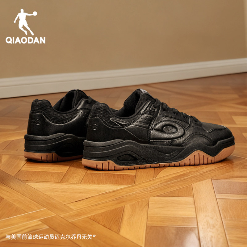 启承5.0|乔丹板鞋男款冬季新款复古百搭皮面黑色休闲鞋增高运动鞋