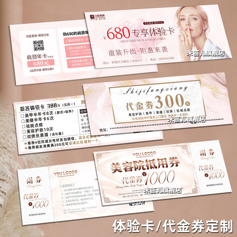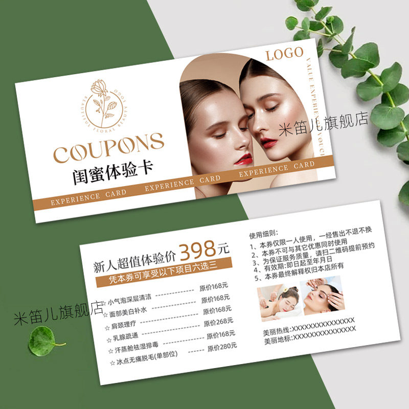 美容院闺蜜卡定制拓客体验卡医美纹绣开业邀请卡皮肤管理名片设计养生优惠卷代金券美甲美睫广告宣传卡片印刷