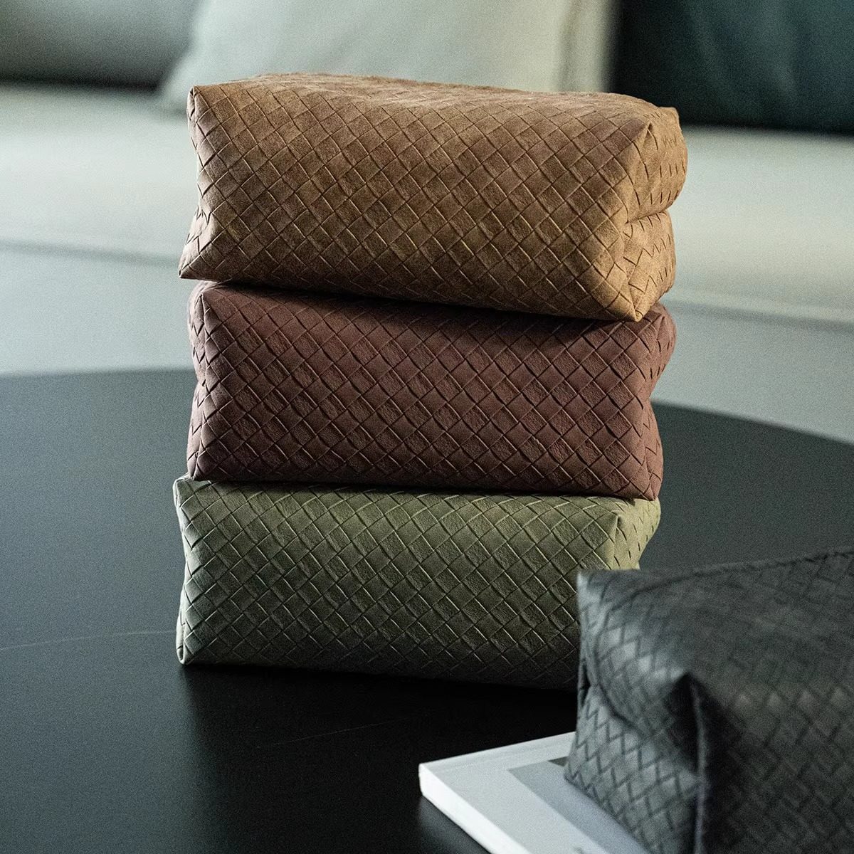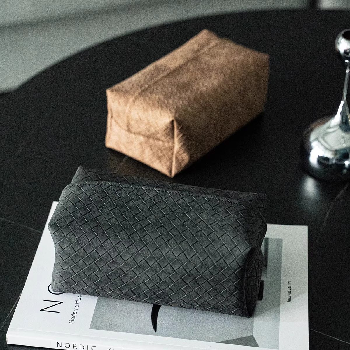 水洗客厅纸巾盒轻奢复古风编织皮质抽纸盒高级感餐巾纸收纳盒古典