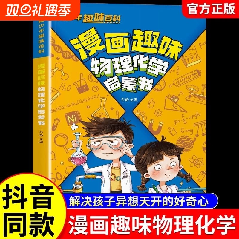 【抖音同款】漫画趣味物理化学启蒙书儿童趣味百科全书漫画版小学生科普绘本书籍阅读课外书全套正版漫画物理和化学知识小四门启蒙