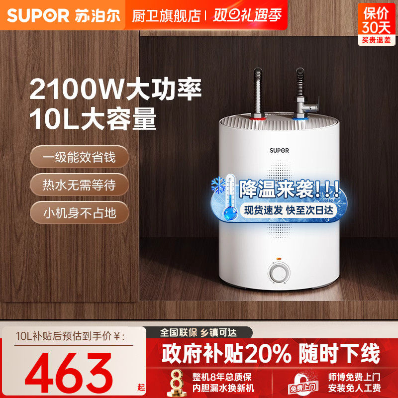 苏泊尔UK08厨宝聚合储水式小型家用电热水器大容量速热厨房热水宝