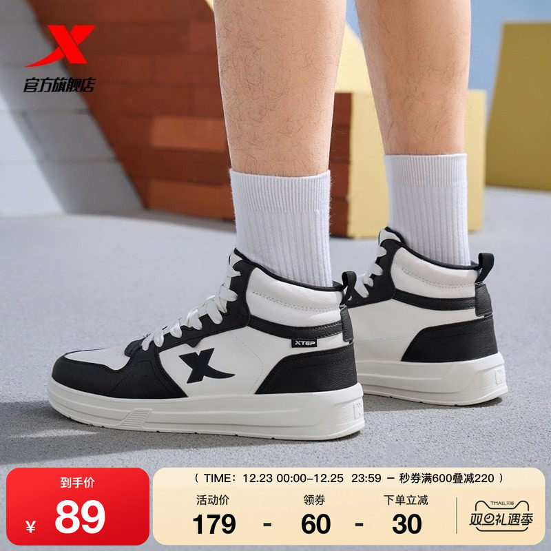 特步高帮板鞋男鞋2025冬季新款百搭休闲鞋女运动鞋潮流软底小白鞋