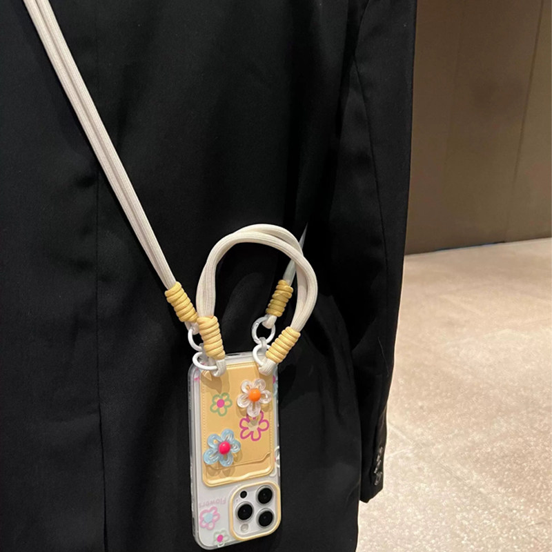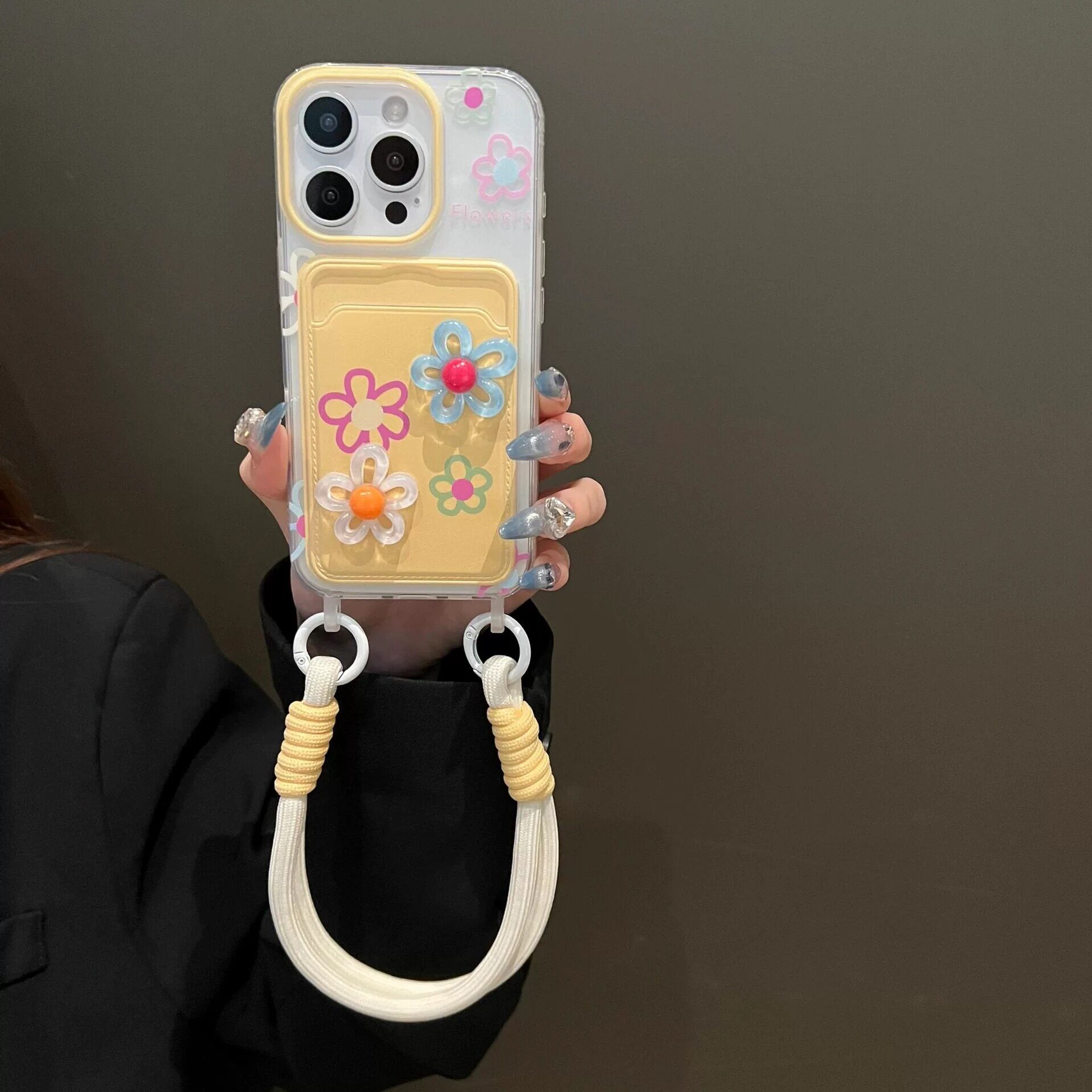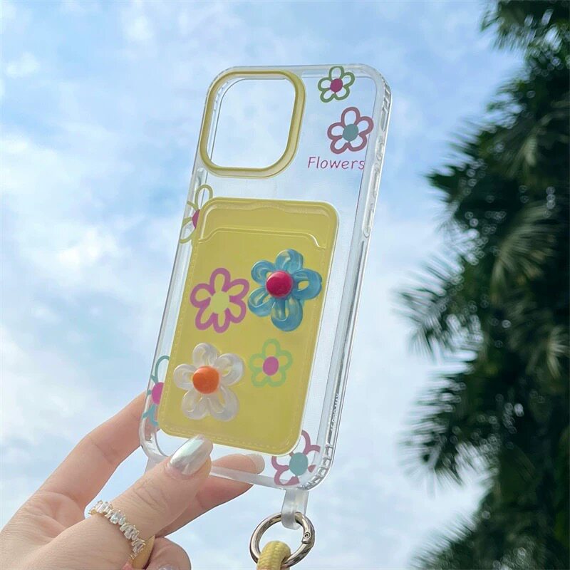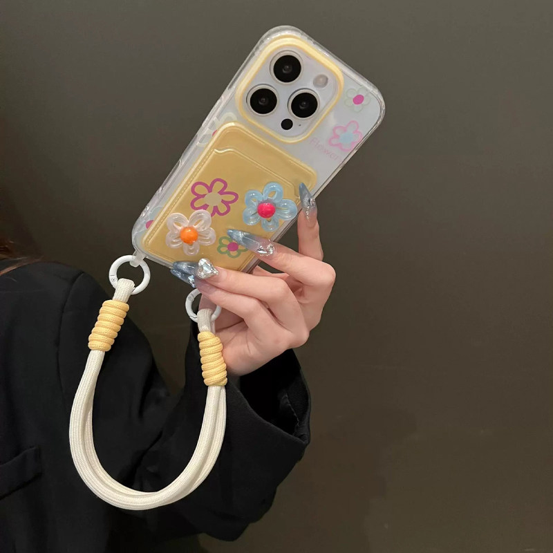 立体奶黄花朵适用苹果16promax手机壳15pro卡包iphone14/13斜挎挂绳11/12日韩xsmax春夏女款78plus全包防摔xr