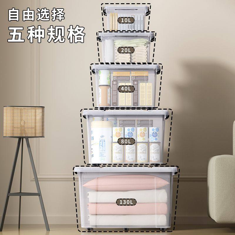 大容量透明收纳箱直角塑料箱防水储物箱加厚大号整理箱手提收纳箱