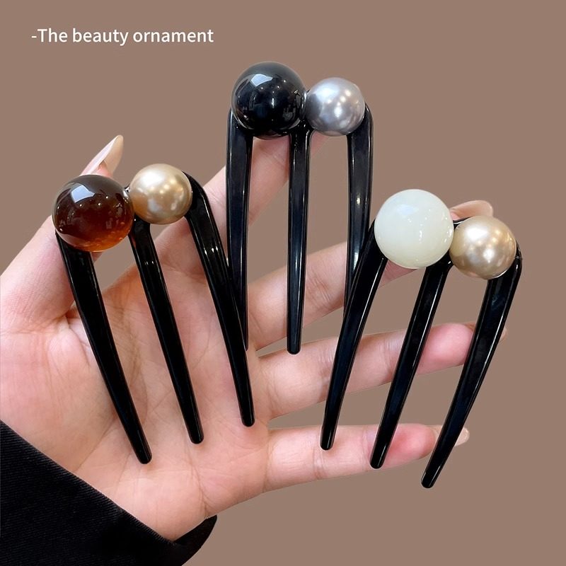 高级感u型三齿珠珠发簪2025新款高端气质簪子新中式盘发发钗头饰