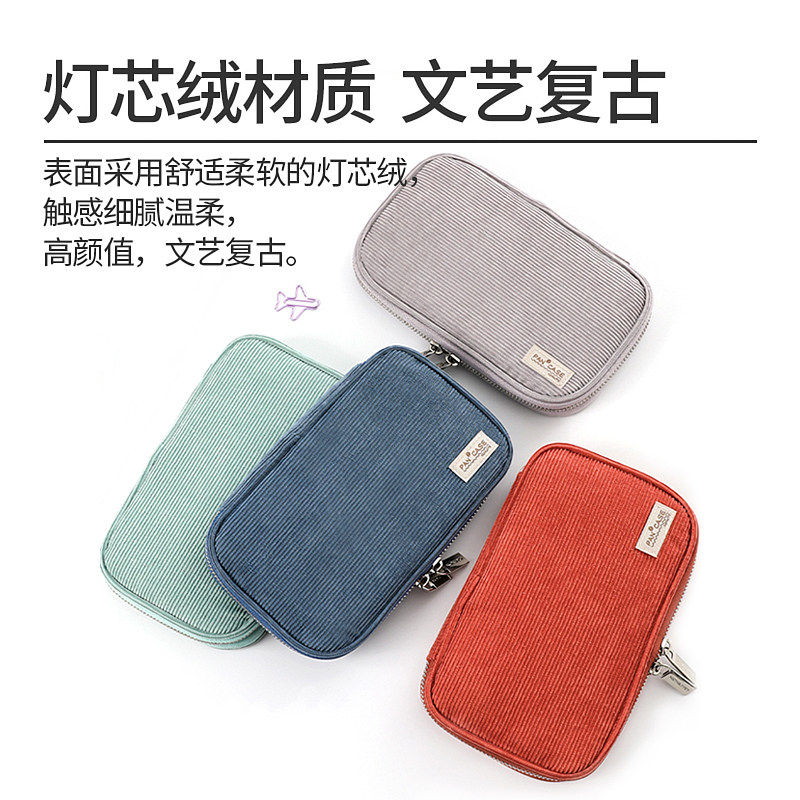 国誉帆布笔袋灯芯绒对开简约大容量手包学生大容量笔盒文具笔袋