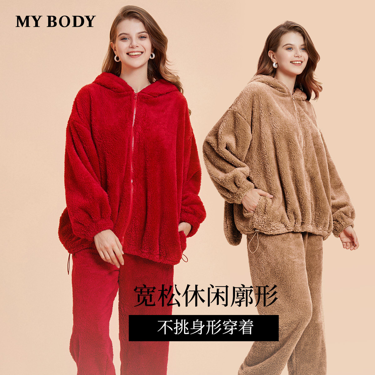 MYBODY商场同款睡衣套装女秋冬2025新款连帽本命年可外穿家居服