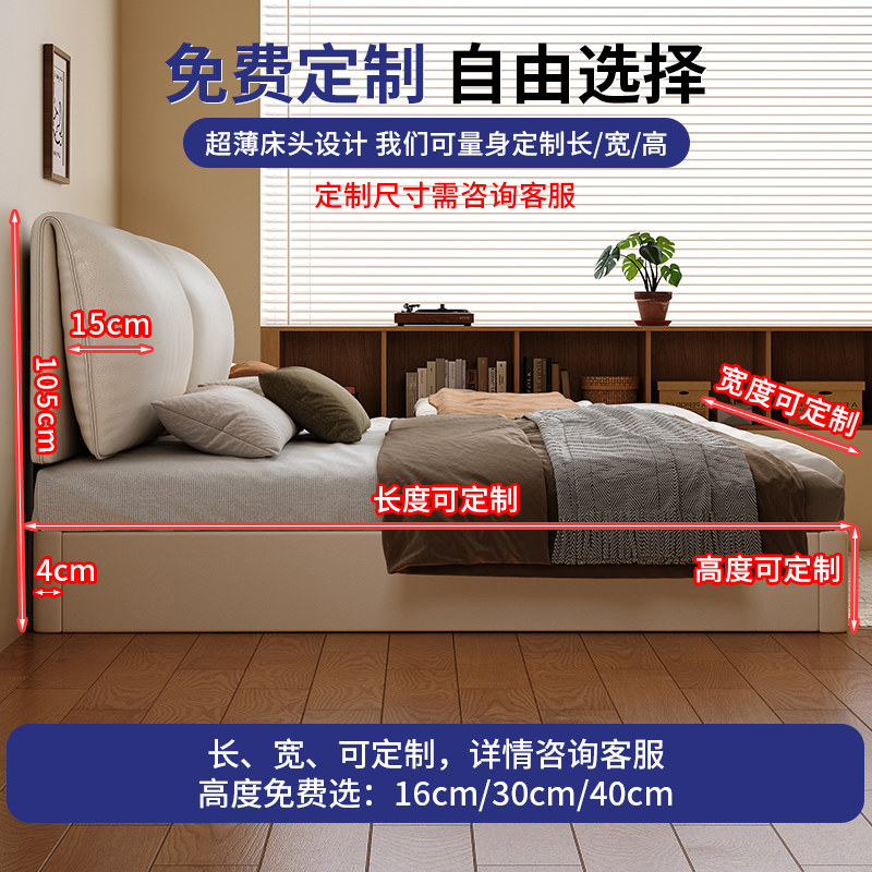 全实木可升降大象耳朵床头齐边床小户型主卧1.5m满铺静音双人大床