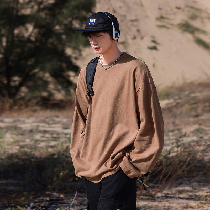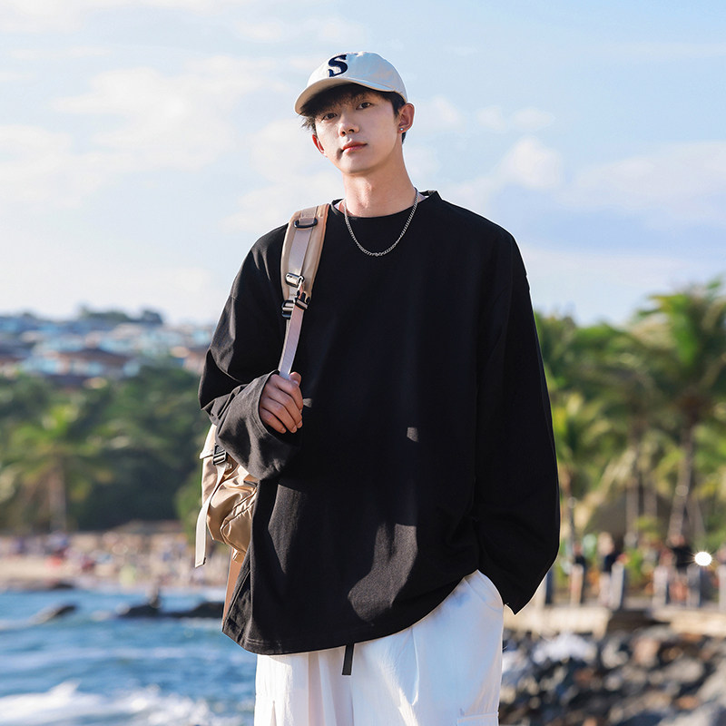 INS纯棉25韩国ins复古基础款纯色秋季打底衫内搭男女长袖T恤bf风