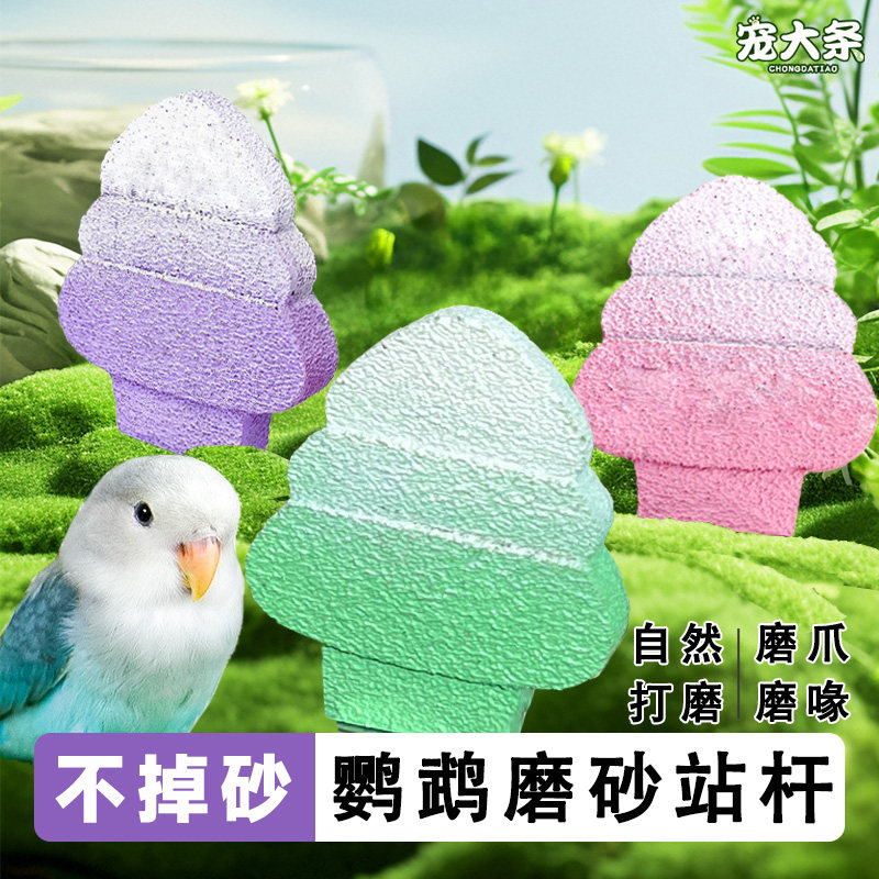 鹦鹉磨砂站杆松树款磨爪磨喙虎皮夏季清凉鸟站台鸟笼配件树叶造景