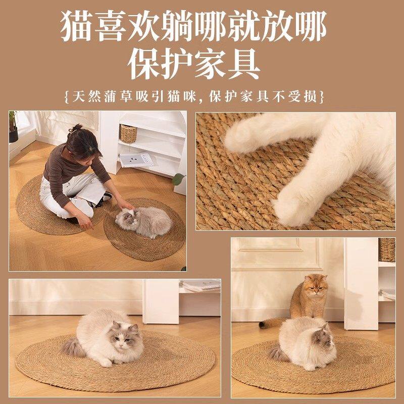 猫抓板蒲草垫四季通用耐磨不掉屑猫窝圆形藤编耐抓猫爪板垫子编织
