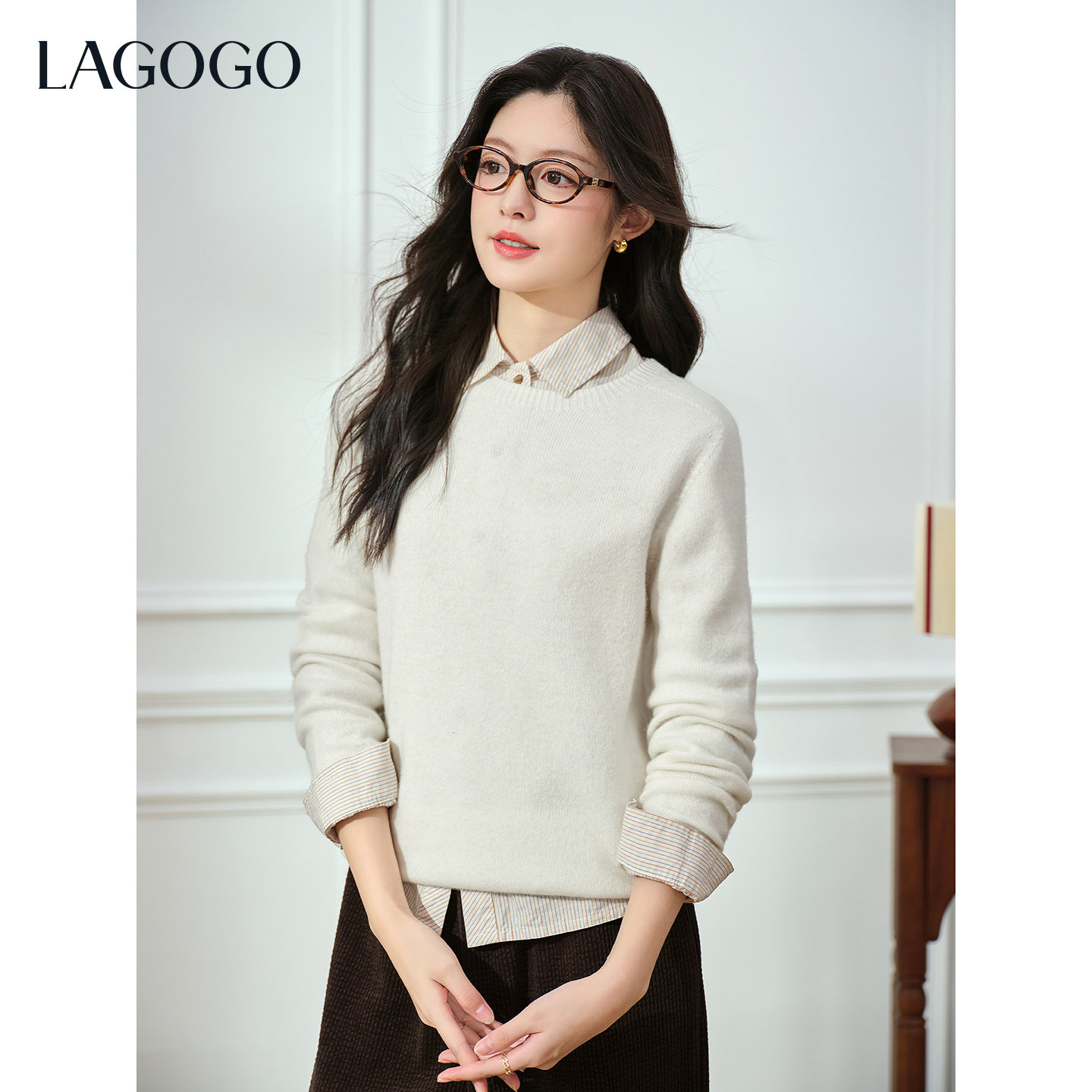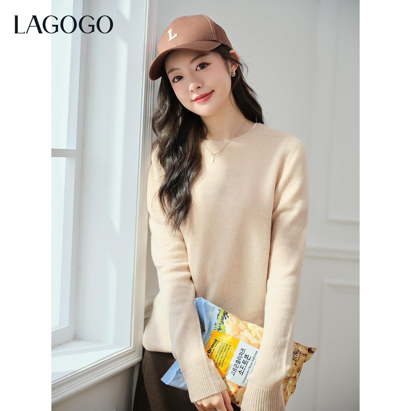 【100%绵羊毛】LAGOGO无缝一体羊毛衫女拉谷谷2025冬新款打底衫