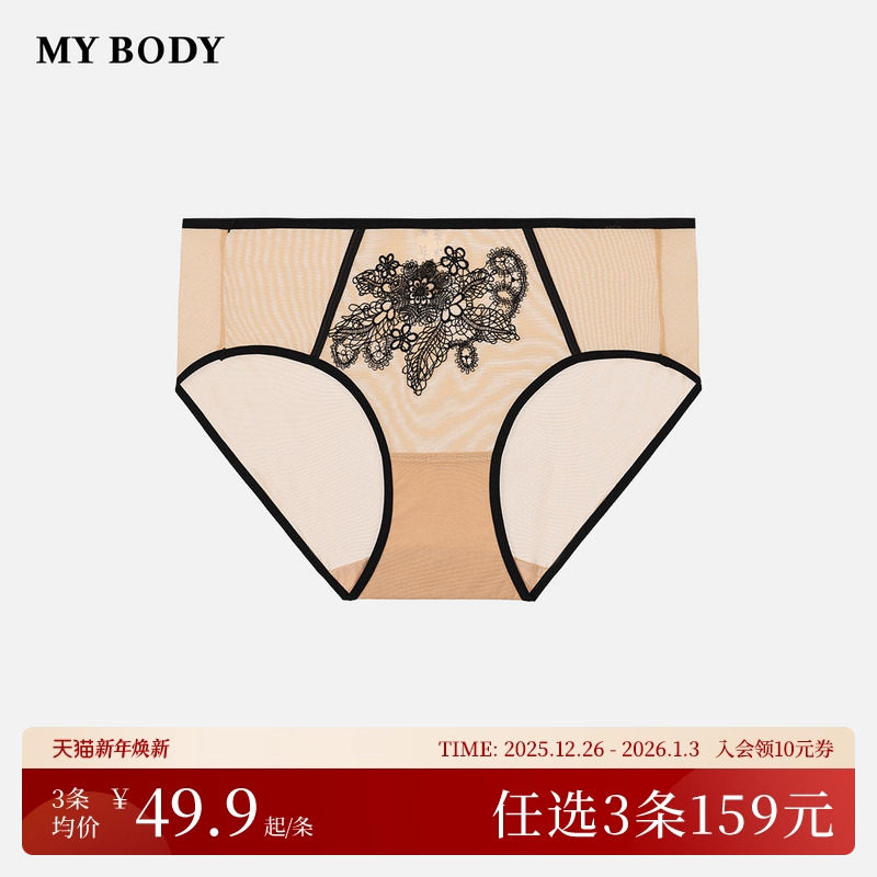 3件159|商场同款MYBODY内裤女轻薄立体水溶花刺绣蕾丝性感平角裤
