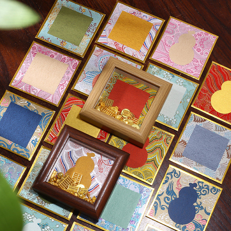 宣艺斋迷你卡纸方形带框文创手写空白书法作品纸diy古风宣纸宋锦国风方卡纸半熟宣纸毛笔字硬卡DIY摆台装饰品