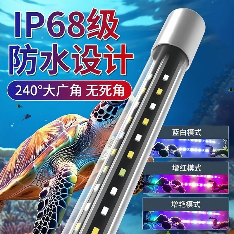 鱼缸灯LED防水照明专用水族箱灯管三基七彩龙鱼灯变色增艳长条灯