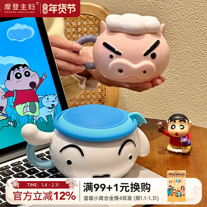 【摩登主妇&蜡笔小新】左卫门马克杯家用水杯女生日礼物陶瓷杯子