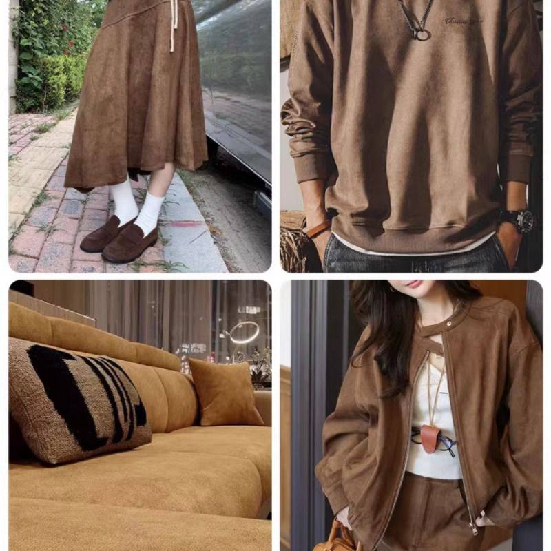 加厚双面麂皮绒布料高档磨毛秋冬外套卫衣设计师服装鹿皮绒面料弹