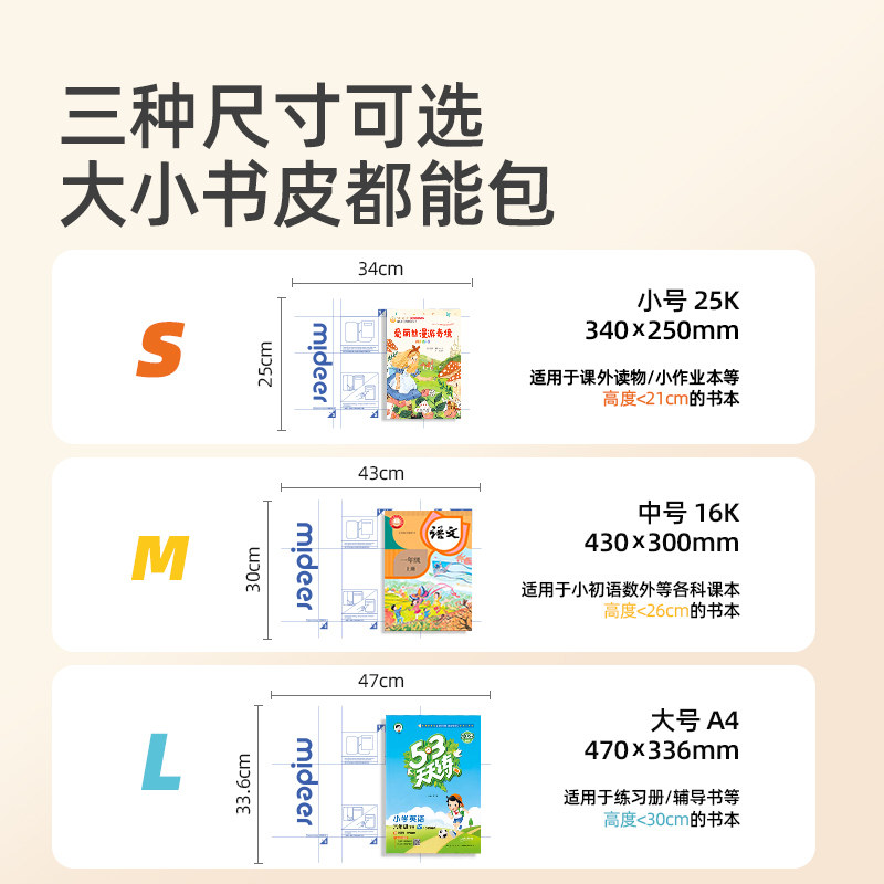 mideer弥鹿学生自粘包书皮包书纸pvc包书膜教材书套透明磨砂书皮