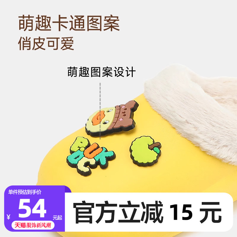 B.Duck小黄鸭童鞋儿童棉拖鞋秋冬男女童棉鞋宝宝防滑室内鞋家居鞋