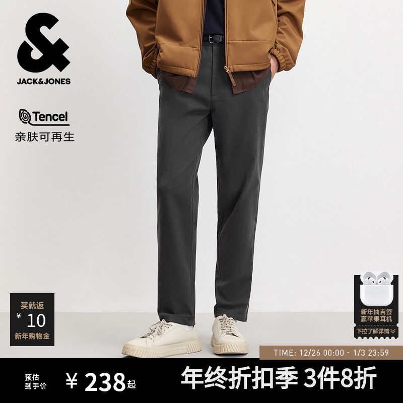 [磨毛]杰克琼斯男装秋冬黑色商务天丝锥形直筒休闲裤男长裤子男款