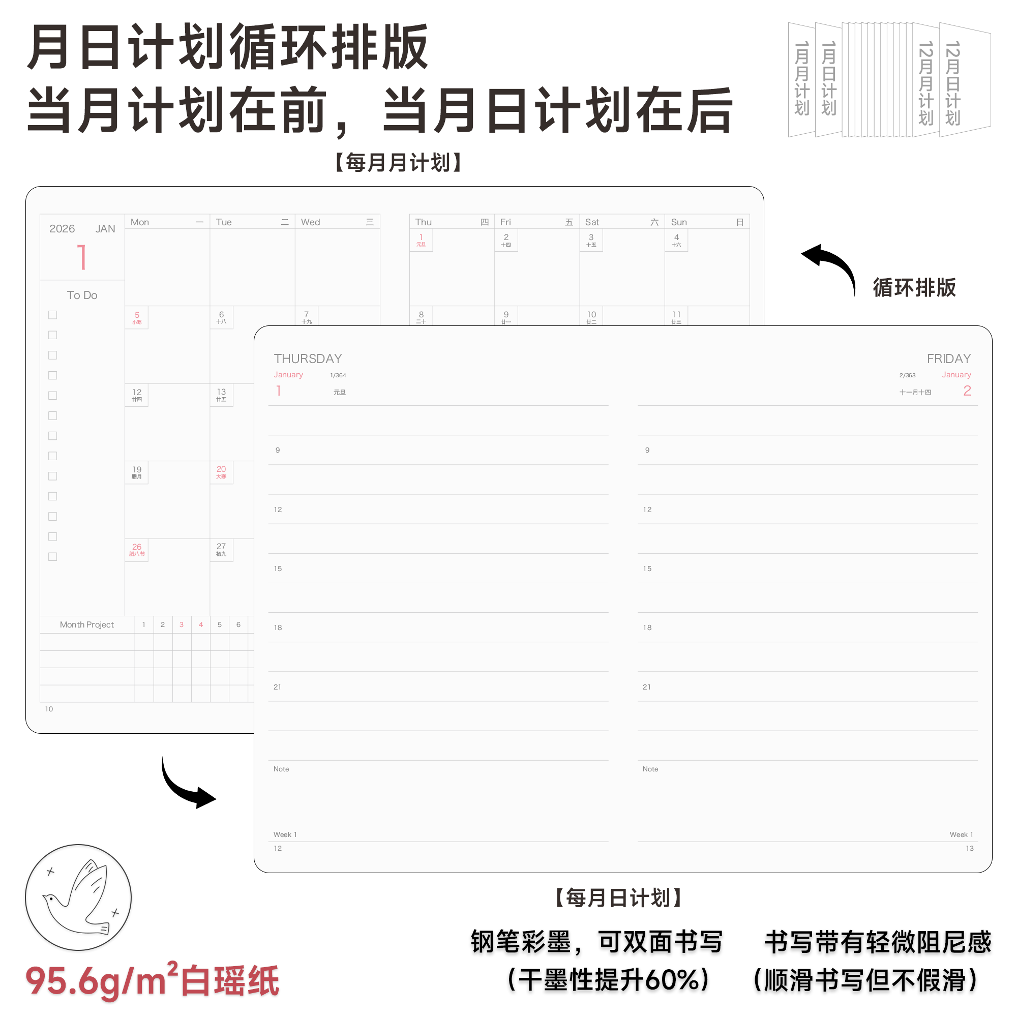 2026年日程本新款计划表365天每日时间管理效率手册大学生日历自律打卡本高颜值记事本文艺精致手账笔记本子