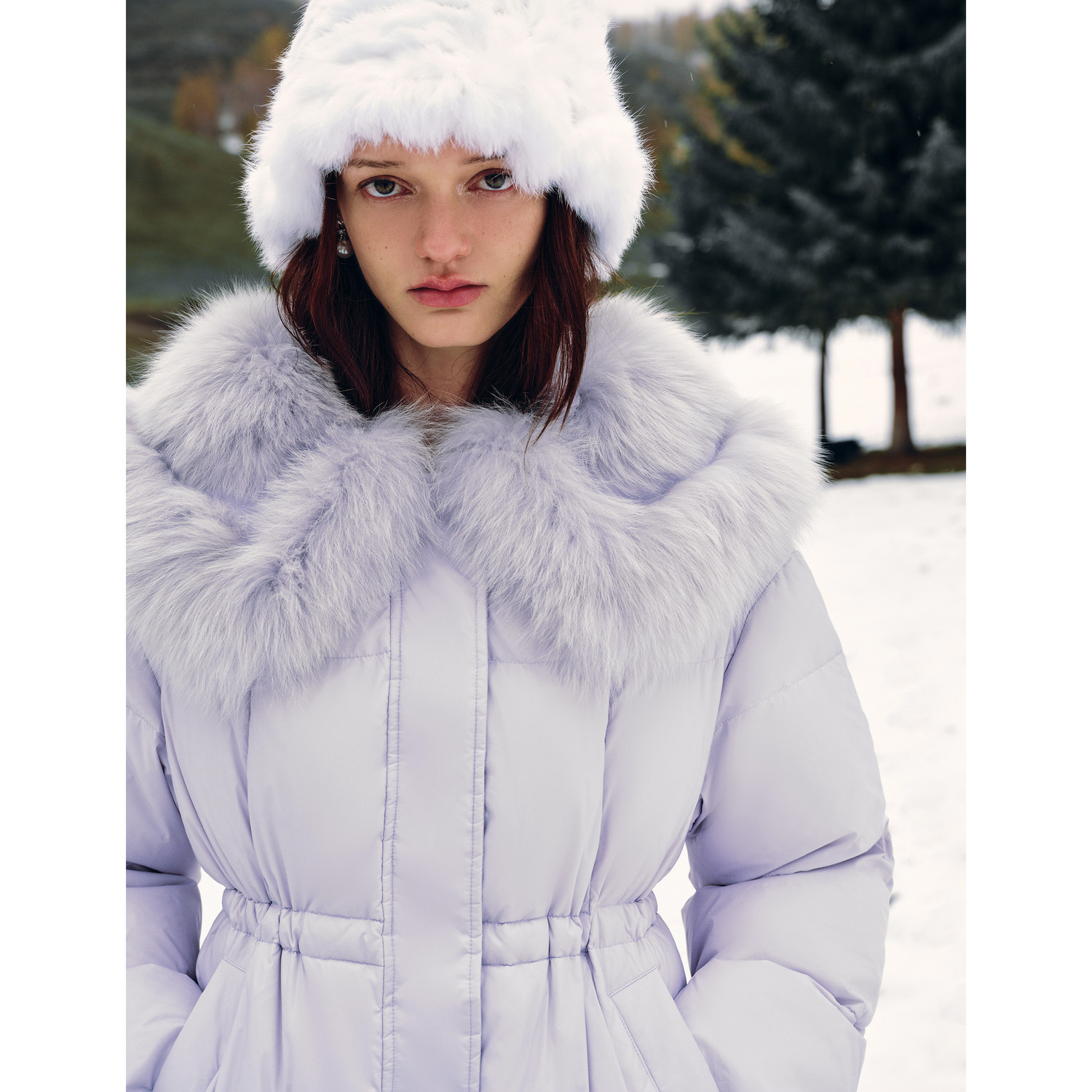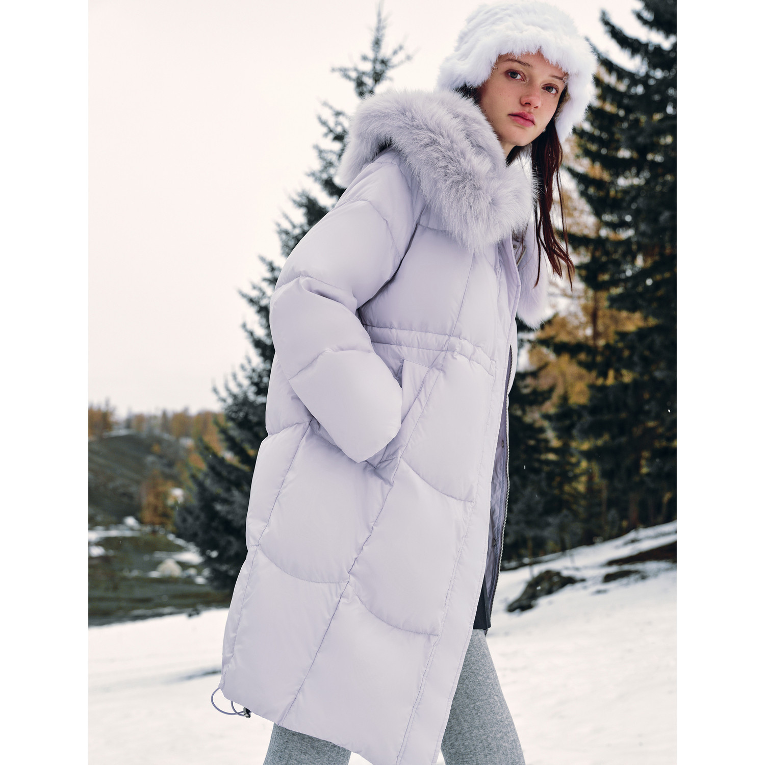 MISSCOCOON可可尼狐狸毛领紫色大衣女2025冬季新款白鸭绒羽绒服