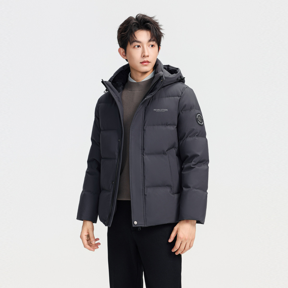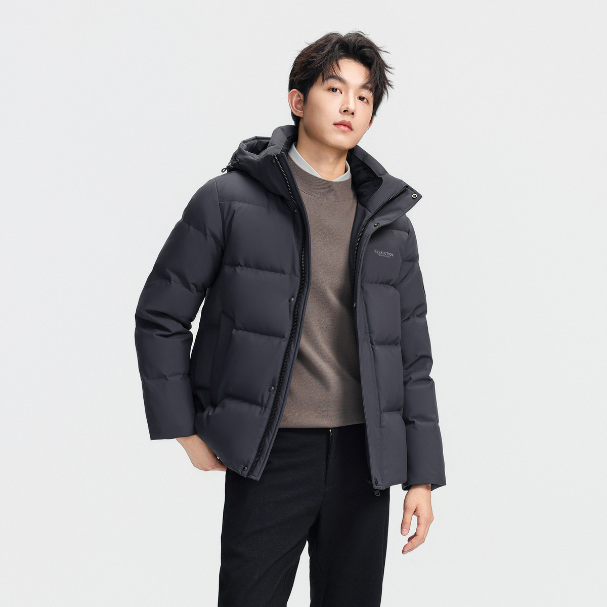 骆驼黑钻5 男装羽绒服防风拒水面包防寒服时尚连帽短款外套秋冬男