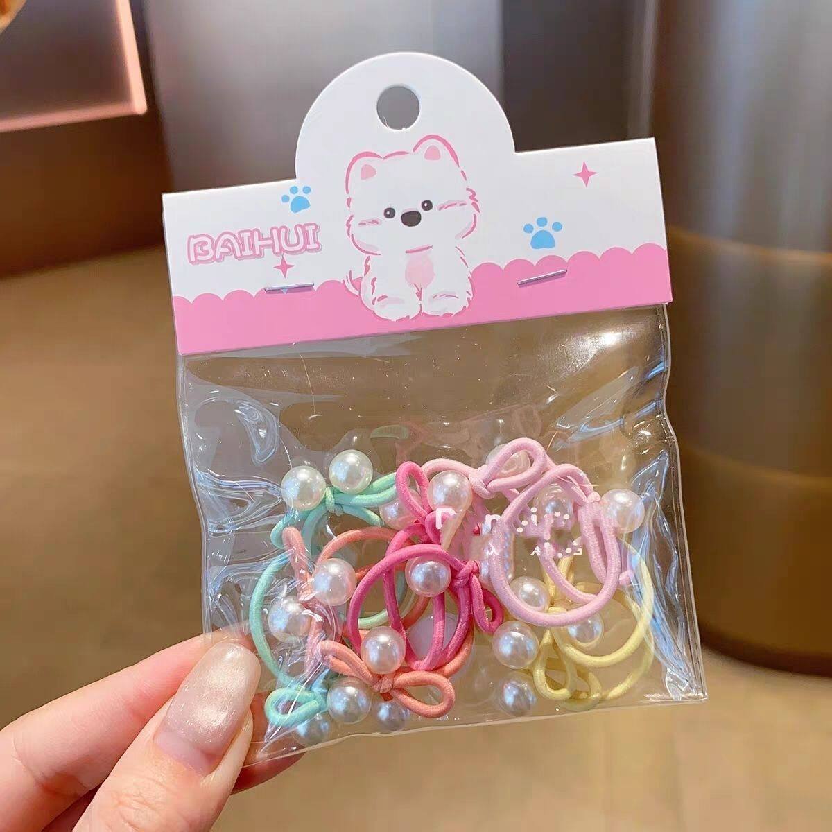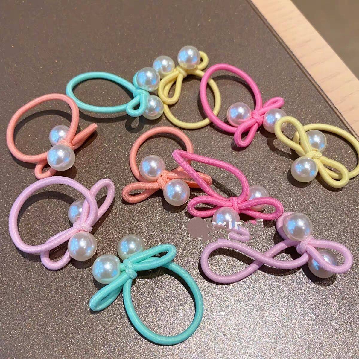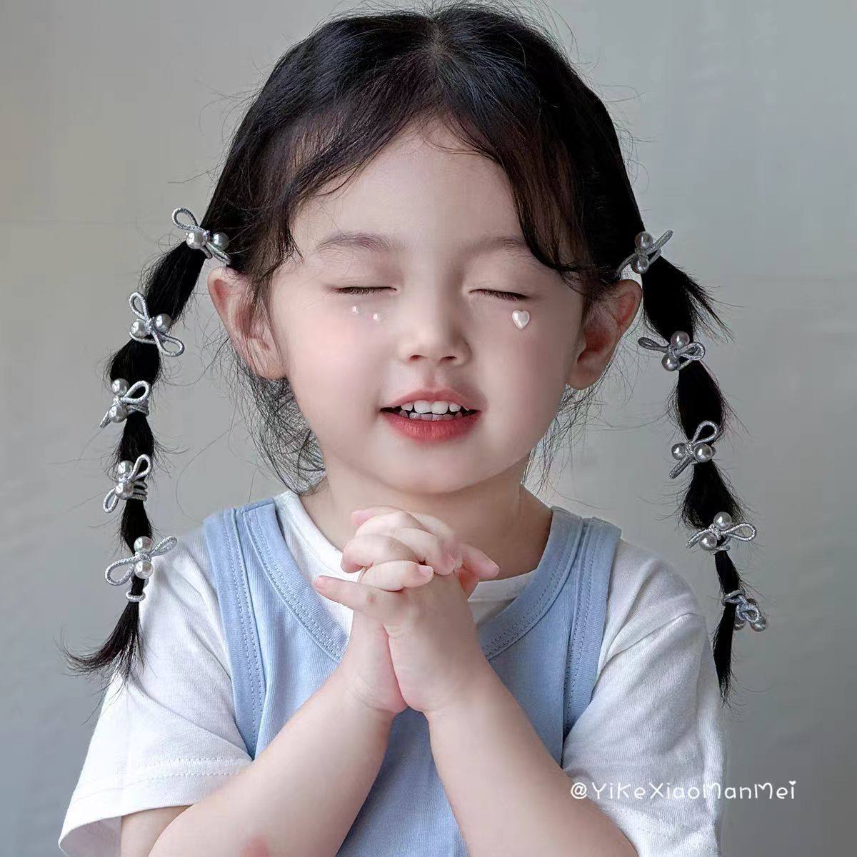 儿童银色蝴蝶结皮筋发圈珍珠拇指圈小宝发绳甜酷小女孩扎辫子头绳