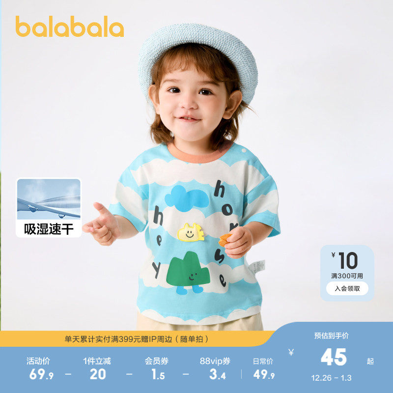 巴拉巴拉婴儿t恤宝宝上衣女童衣服男童短袖2025新款夏装时髦可爱