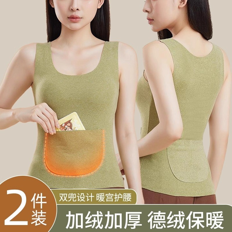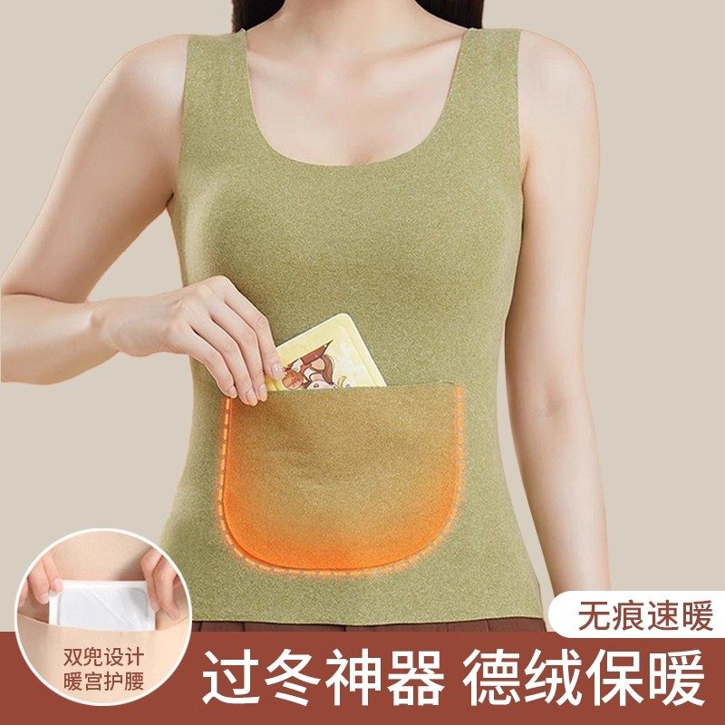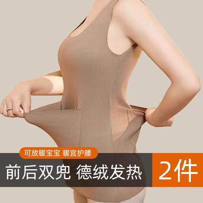 双兜保暖背心女秋冬德绒无痕吊带加绒加厚防寒内搭打底衫大码上衣