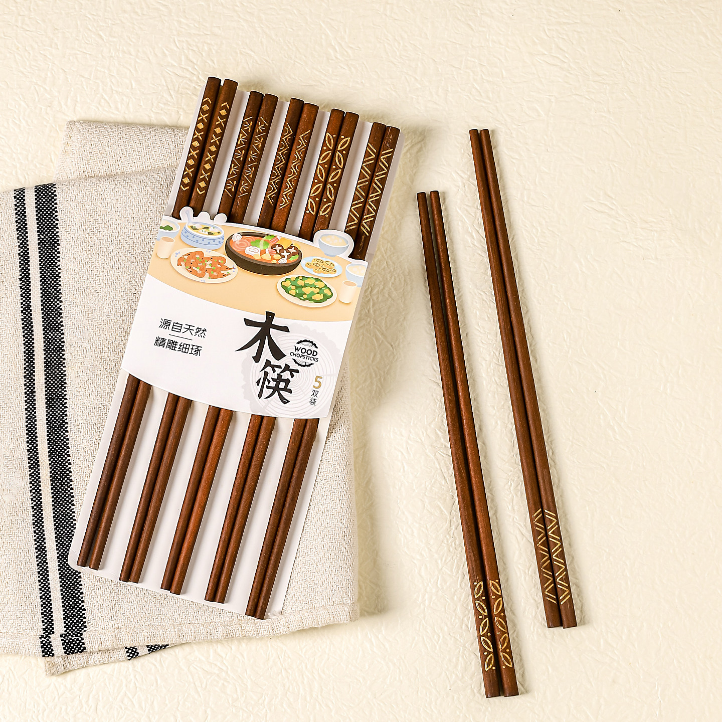 利瓷鸡翅木筷子家用防滑防霉木质快子10双20双家庭套装木箸