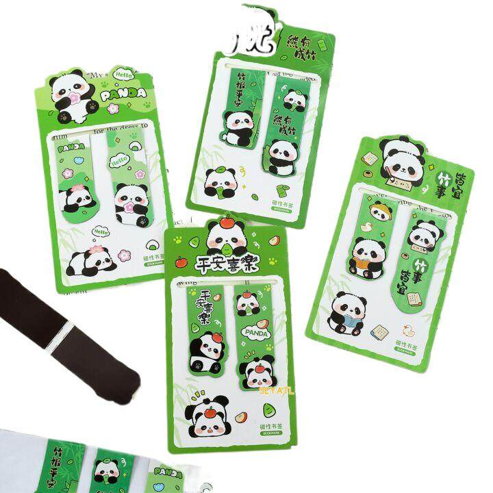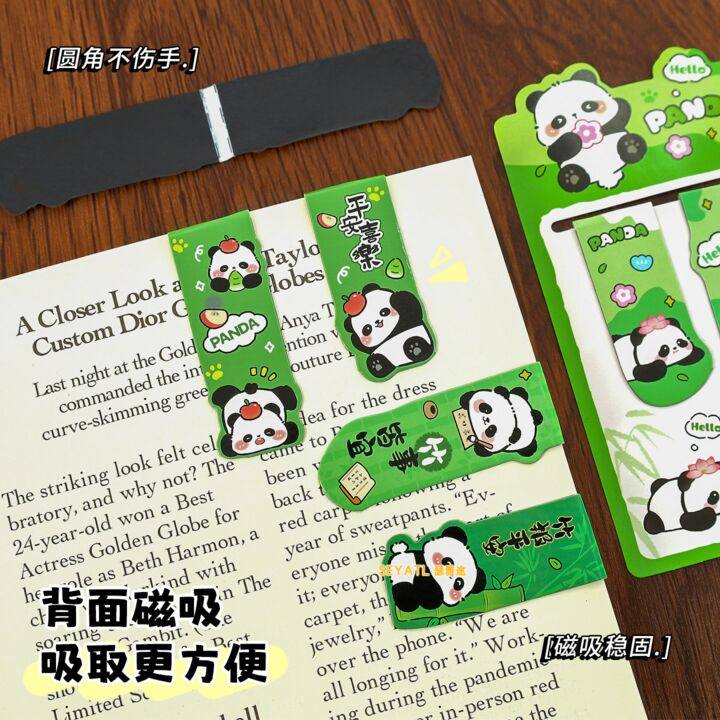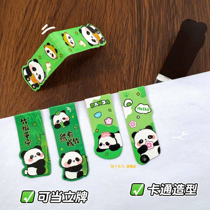 SEYATL新款可爱熊猫磁性学生卡通励志文字阅读书页夹高颜值双面磁